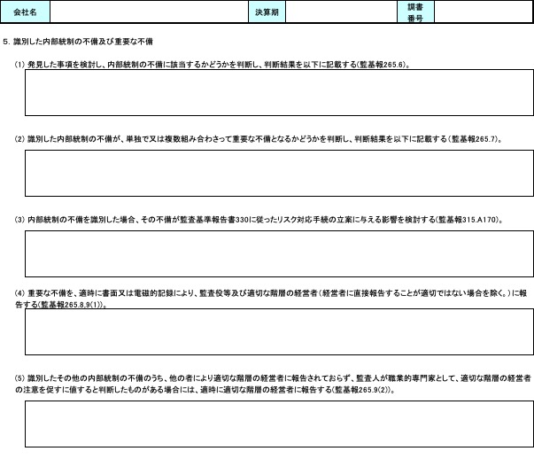 日本公認会計士協会(JICPA)が公表している「監査ツール」の【様式6】に理解した内容と評価を記録します。